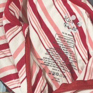 size 12-18 Kickee Pants baby coverall red ivory striped one piece open bottom zipper romper