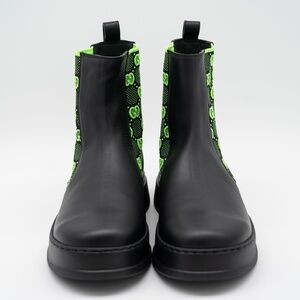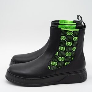 Gucci Chelsea GG Black Leather Pull On Boots Green