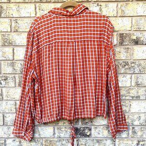 size 14 Lane Bryant flannel plaid top button down no peek cropped tie hem orange