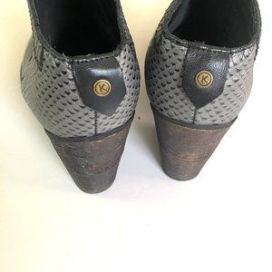 size 38 (US 7) Kaanas leather black ankle booties heel boots reptile back