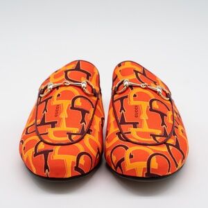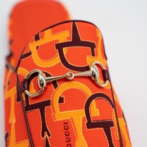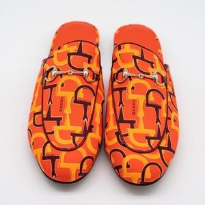 size 39.5G 9.5 US Gucci Princetown Horsebit Print Orange Mules Slip On