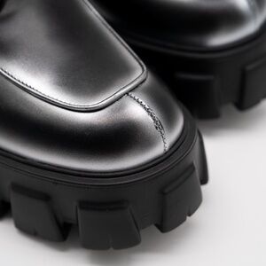 size 39.5eu 9.5 US Prada Monolith Brushed Leather Lace-up Shoes Black Silver