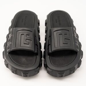 size 40-41 Balmain Black Ari Rubber Slip On Slides Sandal Embossed Logo