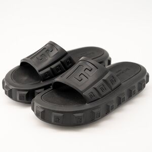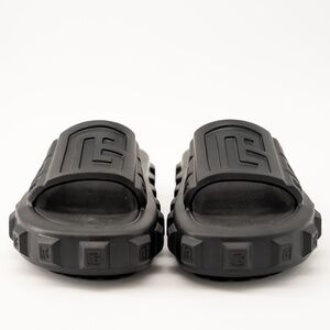Balmain Black Ari Rubber Slip On Slides Sandal Embossed Logo