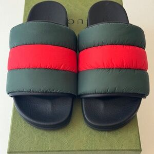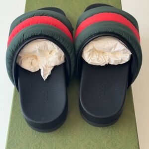 size 40G - Gucci Puffer Nylon Slides Black Red Green Sandal