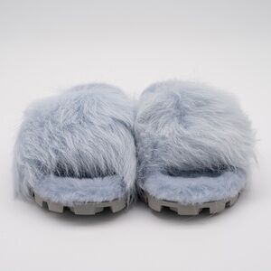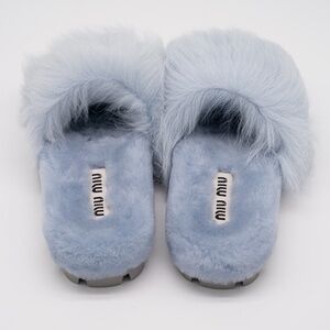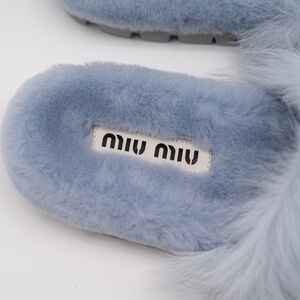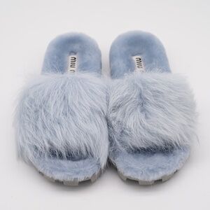 Miu Miu Faux Fur Plush Sandals Slides Blue