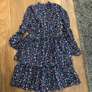 (size 6) Walter Baker Navy Floral Layered Jemma Dress V-Neck Flare Sleeve Ruffle