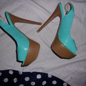 size 6 medium womens high heels shoes teal blue strap dress wear six