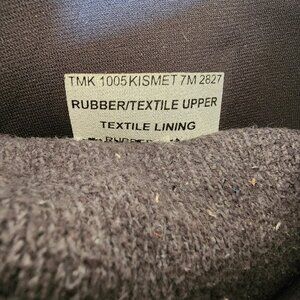 These cute WATERPROOF Rubber boots are super HIP. Made with Rubber/Textile upper - Textile Lining - and Rubber Soles. I've had them in my closet, NEVER worn them, size 7, and not my size. They look so comfortable! They have 2 buckles and they are so cute.