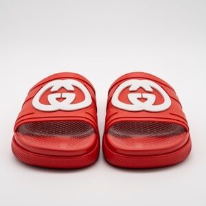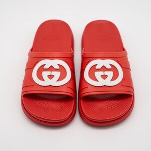 Gucci GG White Red Slides Sandals Interlocking Rubber