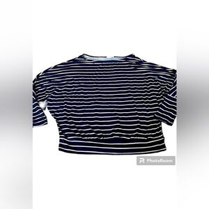 size Large dolman sleeved striped navy and white top