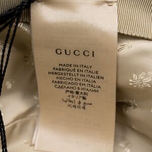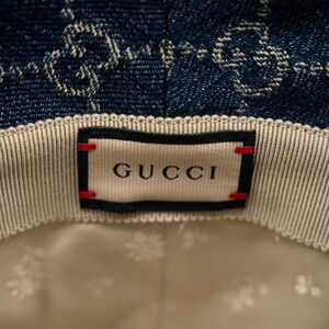 Gucci Monogram Blue Denim Bucket Hat GG Leather Trim
