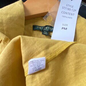 size PM petite medium NWT For Cynthia mustard yellow linen short slv button blou