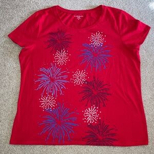 size Petite XL, bust up to 44” inches, patriotic fireworks 💥 shirt, like new co