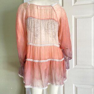 size S 4 Love & Liberty Johnny Was sheer relaxed loose fit tunic boho silk blous