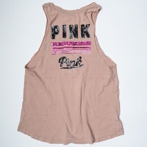 PINK Dusty Pink Sequins Logo Scoop Neck Sleeveless Muscle Tank Top