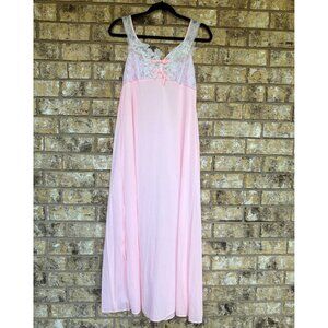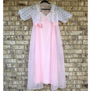 size SM S/M Vintage Sheer Pink Nightgown Robe Piegnoir set Lace trim, Puff Sleev