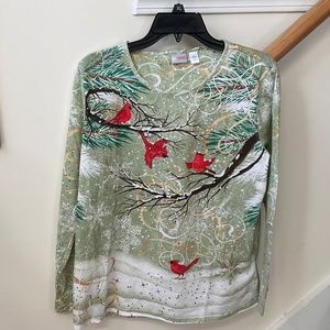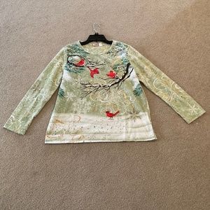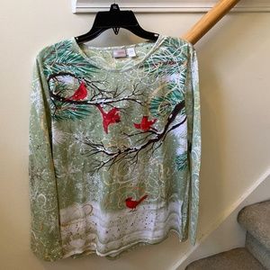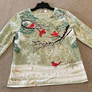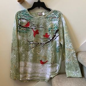 size XL, bust is up to 44” inches, four cardinals pretty shirt. New condition.