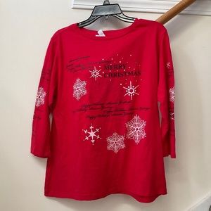 size XL, bust up to 42” inches, holidays and Christmas shirt, USA 🇺🇸 made, new condition. Shirt is all inclusive with the statements including seasons greetings, happy holidays, and Merry Christmas. Great all inclusive shirt. Knit construction, 100 percent cotton, and made in the USA.