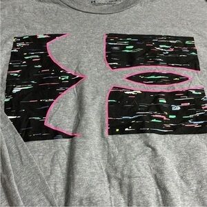 size large UNDER ARMOUR long sleeve gray graphic tee