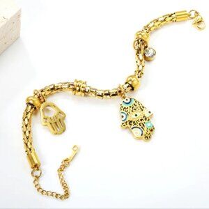 Add some color and elegance to your wrist with this charming bracelet. Featuring a mix of sizes and colors of palm-shaped beads, a round white diamond, and four round through beads, this bracelet is a stylish addition to any outfit. With a length of 16.5+5cm, its a perfect fit for any wrist.