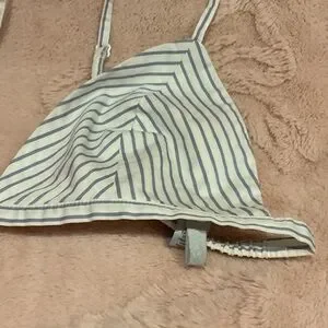 Experience comfort and style with this striped white and gray bralette. Perfect for everyday wear.