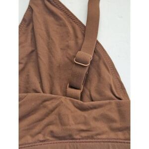 Copper color size large. Very soft and comfortable fabric, polyamide and elastane. Fully lined, adjustable straps.