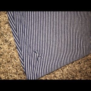 buttons in the middle one buttons on front worn once was too big navy blue and white strips waist skirt