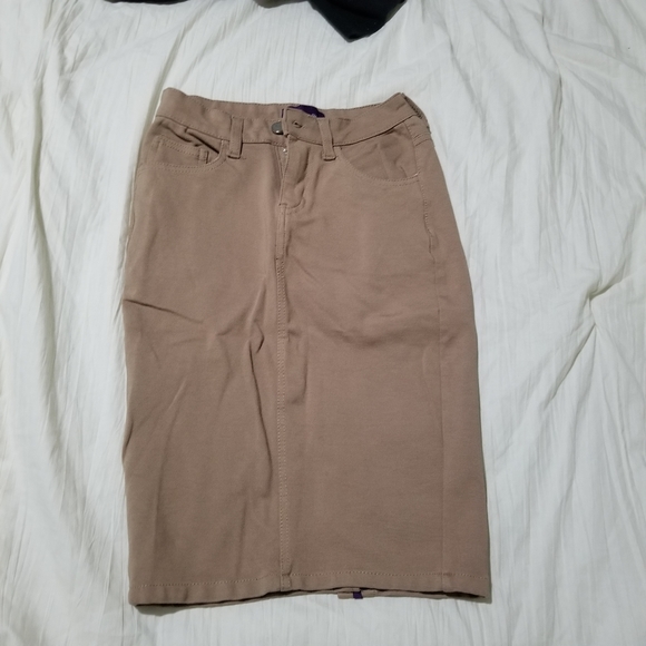Worn once. The skirt is streachy. There are 2 back pockets and 2 front pockets