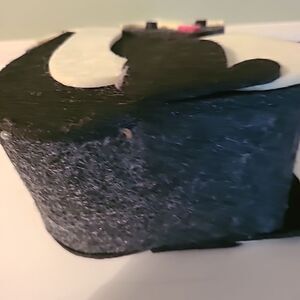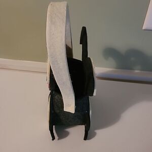 Pre-owned in good condition. Skunk hat has appliqued eyes and a,pink nose with faux fleece hair and yarn straps pom pom ends. sale includes a mini skunk approximately 4 inches tall and a skunk felt bag °approximately 11 inches tall with handle,approximately 5.5 inches wide at the longest point and approximately 3 inches depth and approximately 4 inches tall without handles.