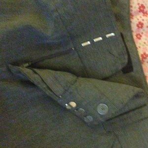 grey slacks with weird button thingys