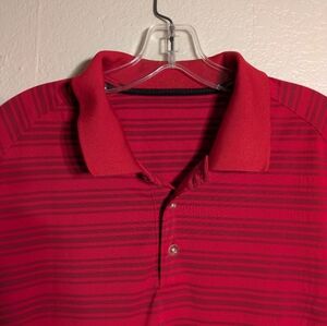 Stylish and comfortable red striped polo shirt perfect for any casual occasion.