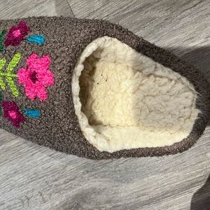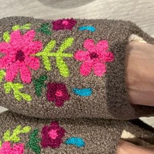 very pretty embroidery slippers fluffy inside. very comfy, but It’s too big for me. It was a gift , size said.9-10 L, brand new never been used