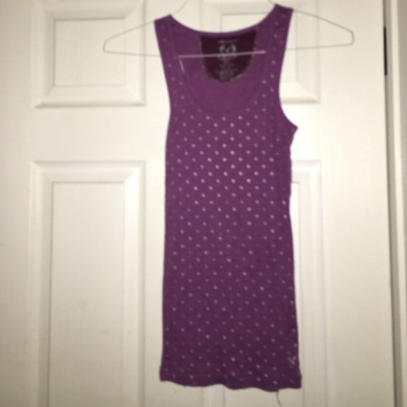 Comfortable slim fitting purple tank top, with silver polka dots