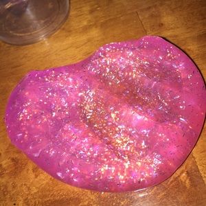 This is a beautiful sparkly clear pink slime. Non sticky, very stretchy, and super pretty