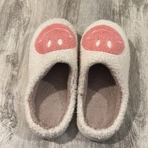 pink smiley face slippers barely worn could fit like a 6, 7 or 8 in women’s