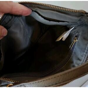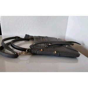 small GREY Crossbody Messenger Bag faux LEATHER purse 7x9 Gold ORGANIZER P40