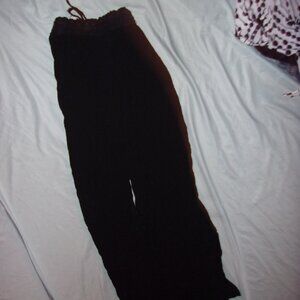 size small boho lounge stretch top comfy pants womans casual wear black elastic top with tie no pockets slit sides 18"