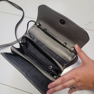 small grey simply vera purse - long strap that can detach into wallet. Has one spot on front flap. Has clean interior. approx 5"x7.5". smoke free. open to offers. Bundle for discount