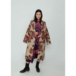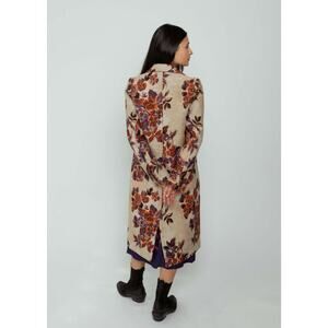 Color floral. 30% polyester, 26% cotton, 25% wool, 8% acrylic, 6% nylon, 5% other fibers. Lining 100% rayon.