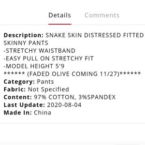 Super cute and chic snakeprint JEGGING pull on pants! 🤩 Perfect fall and winter staple! More product details in last image!