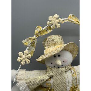 snowman figurine plush decor white gold shelf or hang snowflakes fence READ