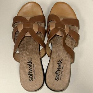 softwalk 8M Tan Brown Leather Slip On Support Soles Comfort Sandals