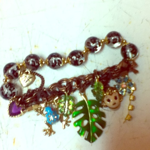 Like new charm bracelet. Cute leopard design in the beads and blue flower. Monkey, leaf and frog charms attached. Have other pieces that match bundle and save