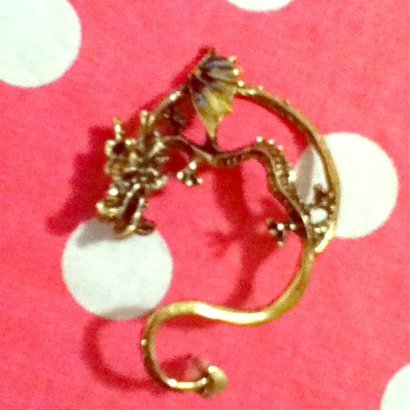 I'm having a hard time taking a picture of this. Golden dragon ear cuff, for left side. I have cartilage piercings on that side so I could never wear this. My loss, your gain!