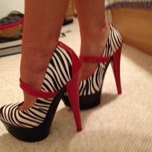 Fantastic conversation starting shoes. Stiletto heels to show those beautiful calves off as well as other assets :) True to size 6.5, excellent condition.