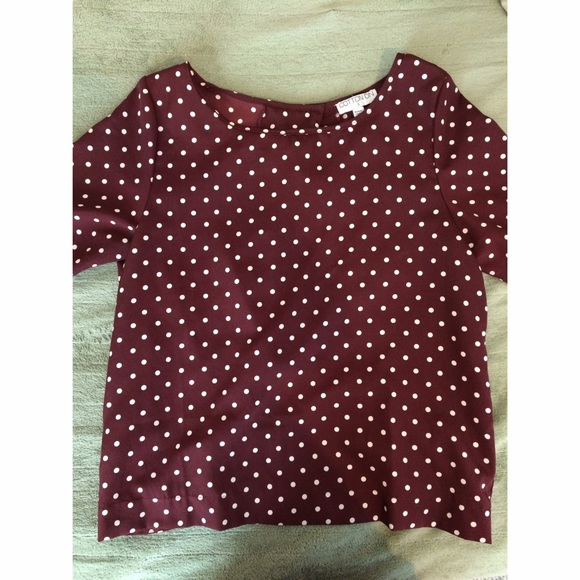 Polka dot open back shirt! Super cute to style with high waisted shorts/pants. It has a silky/chiffon material but very durable. :)