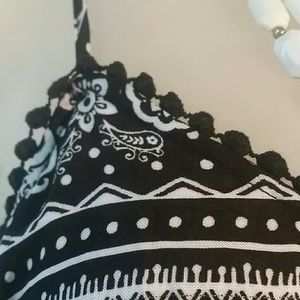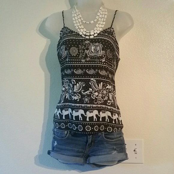 Adjustable spaghetti straps. Black tank with white elephant & Paisley detailing.