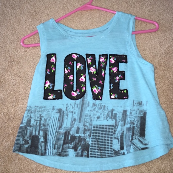 Blue justice LOVE tank top. Super cute, worn once. Size girls 10. Perfect condition. Offers welcome