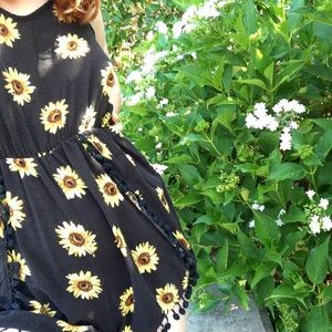 this romper is my fave i've ever had. it's gotten so so many compliments and you will too!! it's cotton with mini fringy... what would you call them... ornaments? the back is a half-zip up and shows a lil skin. 28.5" shoulder to bottom. there's a lil fraying on a couple of the fringes but nothing noticeable